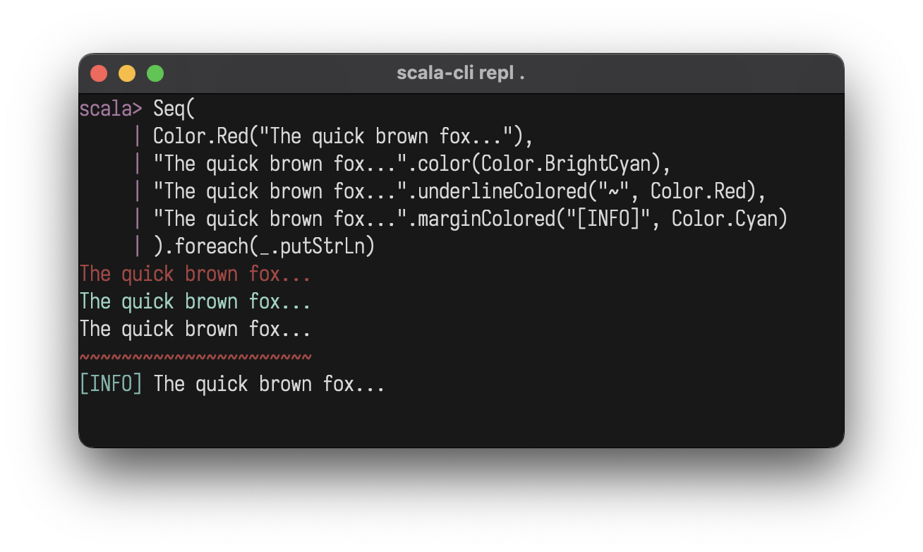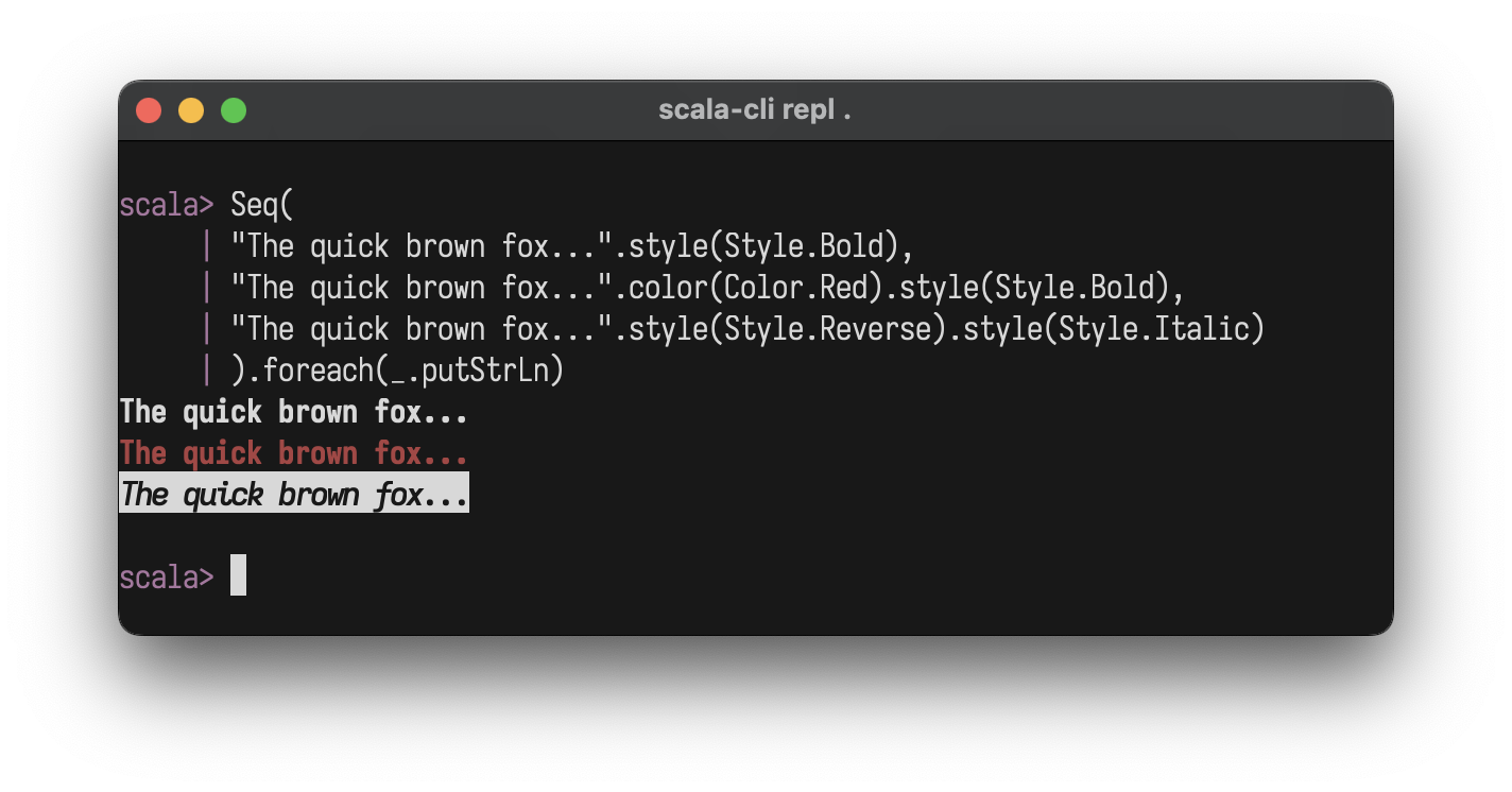 A lightweight, zero-dep lib to build compositional ANSI strings, terminal plots, and interactive Elm-style TUI's in pure Scala.